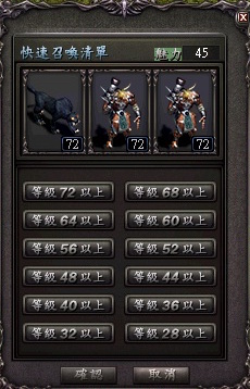 普遍現在私服的召喚清單分為兩種,文字召喚清單和圖型召喚清單如下圖: