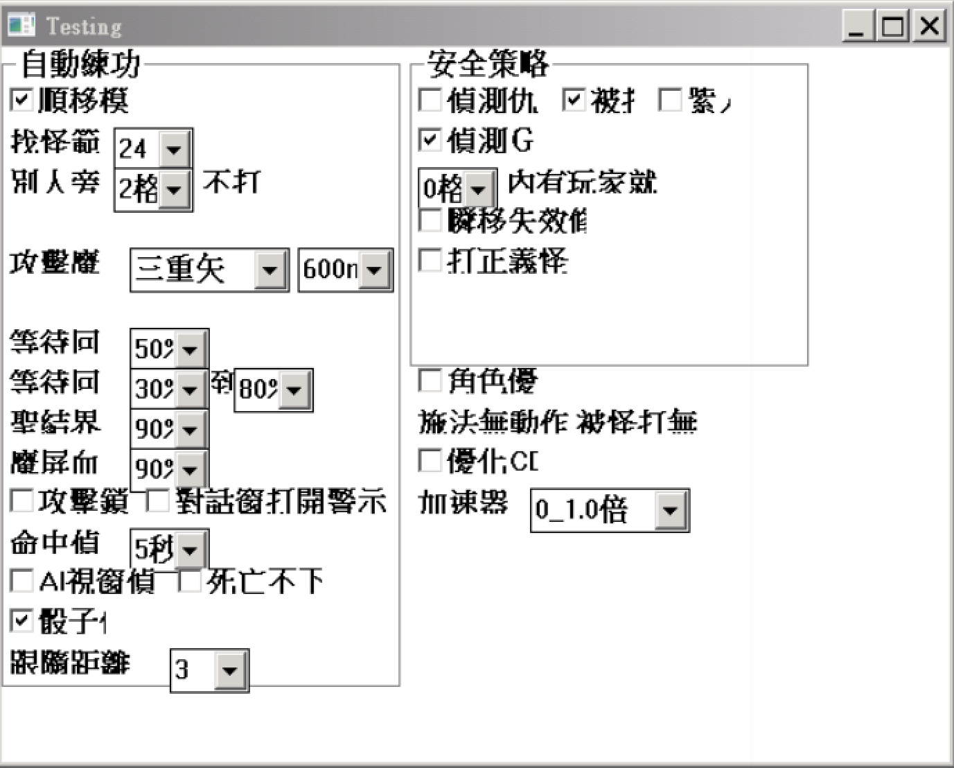 | 等待回血 | 設定低於幾%血量會等回血後再繼續練功 |